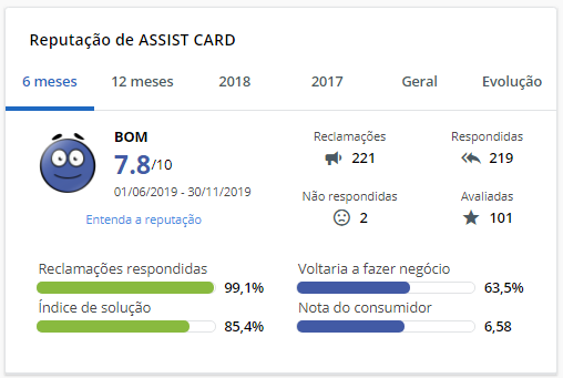 Na sequência aparece a Assist Card com a classificação “Bom” e nota de 7,8.