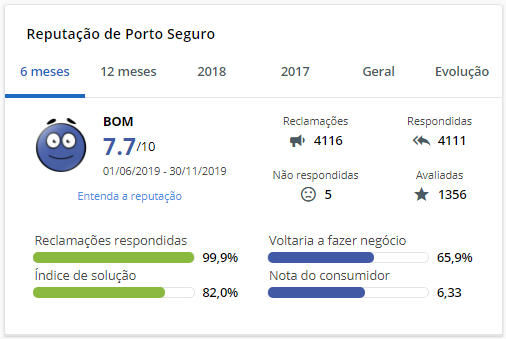 A empresa Porto Seguro ocupa o 5º lugar no ranking por ter obtido a nota 7,7 e a classificação “bom”.